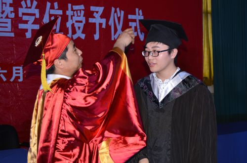 郭睦庚为毕业生颁发学位证书、援正流苏