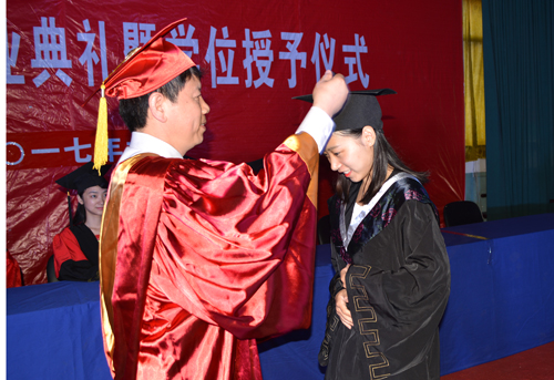 李琴为毕业生颁发学位证书、援正流苏