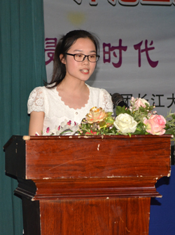 我院“优秀共青团员”(左)、湖北省“优秀共青团员”获得者发言