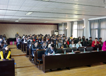 本网讯 4月13日上午,新疆教育厅选派的管理教师赛力克来我院,在学术报告厅与我院百余名新疆籍学生座谈,了解他们在校的学习、生活情况。学生工作处处长刘磊、副处长李刚英参加座谈会。(见习学生记者 亢振伟 摄影报道)