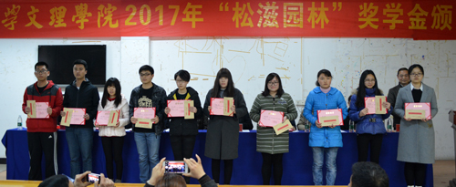 本网讯(记者 吴秀丽)今天(3月17日)下午,我院2017年“松滋园林奖学金”颁奖仪式在长江大学西校区图书馆学术报告厅举行,园林、建筑学、环境设计专业的20名优秀学子获奖学金。