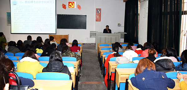 本网讯(记者 刘磊 见习记者 李再理)3月9日下午,长江大学经济学院副院长何蒲明教授应邀来我院讲学,围绕“明确考研新航向 实现人生理想”这一主题作学术报告。工商管理系百名师生认真聆听报告。