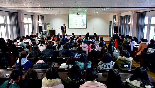 克库伦教授、米歇尔·斯图尔特女士、王娟介绍留学政策