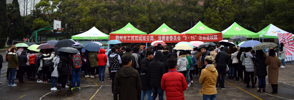 3月15日上午,荆州市工商局城南分局、荆州市电子商业协会与我院携手,在西校区12舍前的篮球场举行“网络诚信 消费无忧”“3·15”保护消费者权益主题宣传活动,通过讲座、咨询、展板、横幅、宣传单等形式,向学生普及法律,传授网络维权,辨真识假的方法。活动吸引了我院近300名学生踊跃参加。