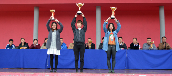 女子团体总分前三名(工商系、人文系、机电系)代表领奖