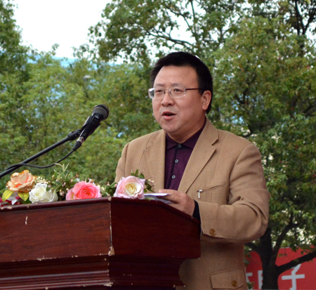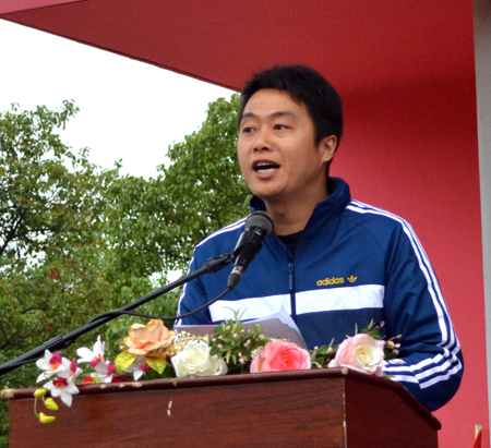 会上,本届运动会总裁判长王晟宣布比赛成绩。