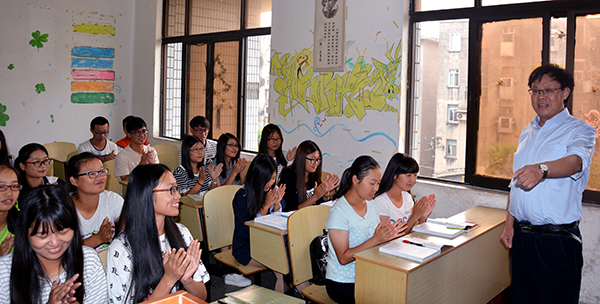 8点45分,梅平来到1教302教室,向坐在第一排的英韩专业新生阮莉茹了解第一堂课的感受,在师生热烈的掌声中,梅平提出学院和外国语系会进一步密切与韩国驻汉总领馆的联系与合作,为同学们出国留学深造创造更多的机会。“院长的承诺给予我们鼓舞和信心!”任课教师和同学们纷纷表示。