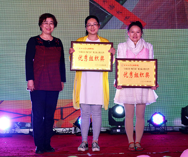 本网讯(记者 刘磊 见习记者 熊姿 彭念)5月27日,在城中校区工会大厅,我院“十佳大学生”暨第五届心理文化节、第十届“泮池五月风”科技文化节闭幕式颁奖晚会举行。