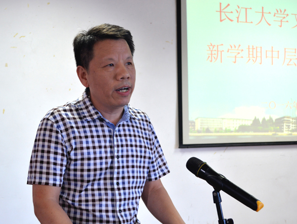 梅平传达了长江大学新学期工作会议精神,指出学院发展中的问题:校区规划及环境改善、硬件条件和软件建设、制度建设、师资队伍建设、办学理念更新、 管理队伍建设、全院教职员工凝聚力。