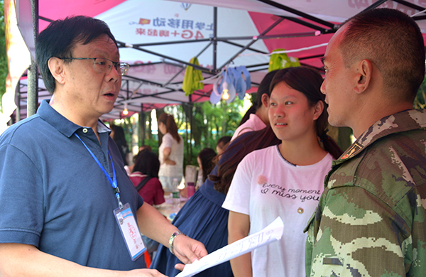梅平就如何方便学生缴费和畅通寒门学子绿色通道等问题,与副院长郭睦庚进行了现场交流;认真听取了学生和家长对学院的意见及对校园环境的感受,听取了一线工作人员对迎新工作的建议。