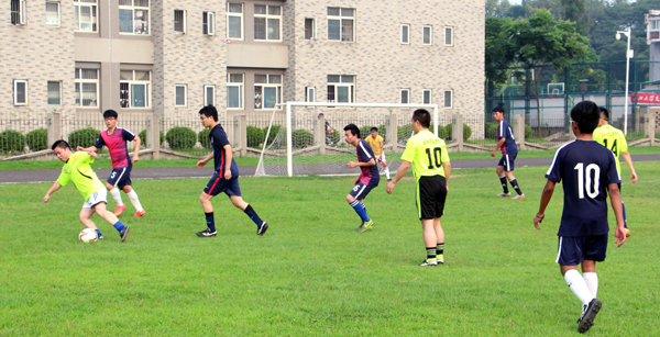 本网讯 (见习记者 吴雍) 6月12日下午,我院第四届足球赛闭幕式在城中校区足球场举行。身着绿色球衣的教师队与身着黑紫色球衣的学生队,在赛场上展开角逐,最终打成平手,为本届比赛划上圆满的句号。