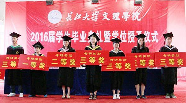 郭睦庚宣读了《关于授予谢媛等1850名2016届本、专科毕业生的决定》和《关于授予谢媛等1566名本科毕业生学士学位的决定》文件,李琴宣读了《关于表彰2016届198名优秀毕业生的决定》、《关于表彰2016年考取硕士研究生学生的决定》等文件,决定对彭海龙等66名考取2016年硕士研究生的学生予以表彰,为易梅等2名考取“985”院校的学生、周凯翔等7名考取“211”院校的学生、万鹏等57名学生颁奖。