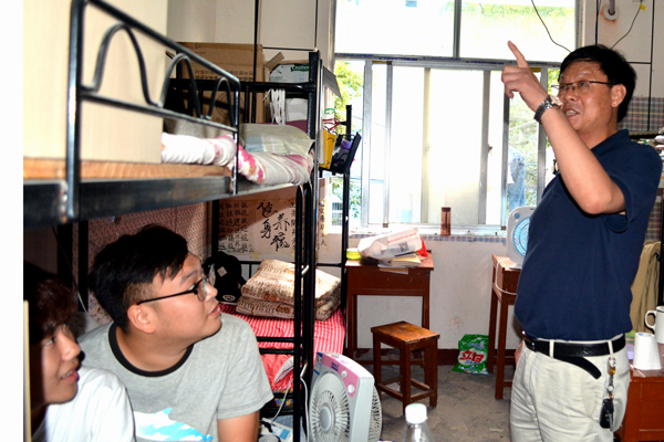 梅平一行首先来到4舍女生楼,一走进公寓门厅,梅平就向负责公寓楼的宿管阿姨详细了解学生公寓工作情况,他还走进每一间学生寝室,认真查看了门窗、床铺、洗漱间等设施,详细询问是否已作好充分准备,迎接新生入住。