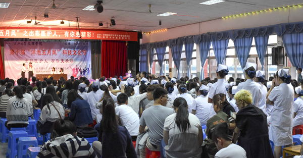 副院长李琴、党委副书记孙细望及相关单位负责人与300余名师生现场观看比赛。长江大学医学院龚爱萍副教授、胡艳红老师和我院学生工作处副处长李刚英担任评委。