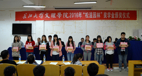 本网讯(记者 吴秀丽)4月15日下午,我院2016年“松滋园林奖学金”颁奖仪式在长江大学西校区图书馆学术报告厅举行,园林、景观建筑设计专业的18名优秀学子获奖学金。