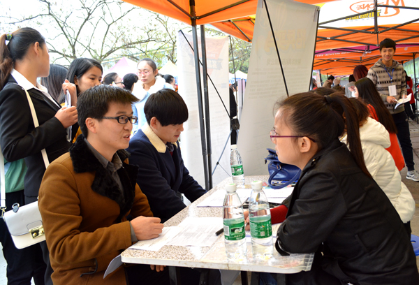 像傅俊月一样,前来参加应聘的同学们都很自信,也很活跃,积极主动与用人单位负责人进行沟通与交流;在择业方面,也更加理性,相较薪金、福利和待遇,则更注重自己的未来发展。