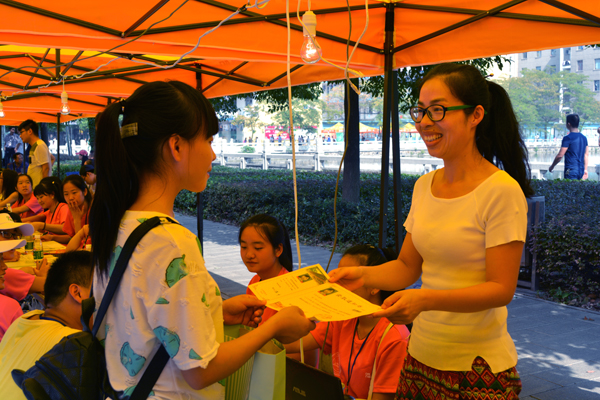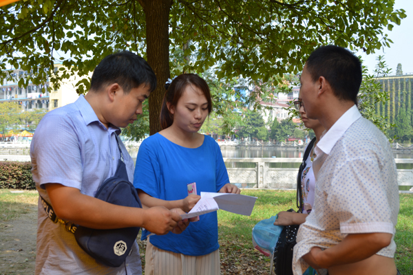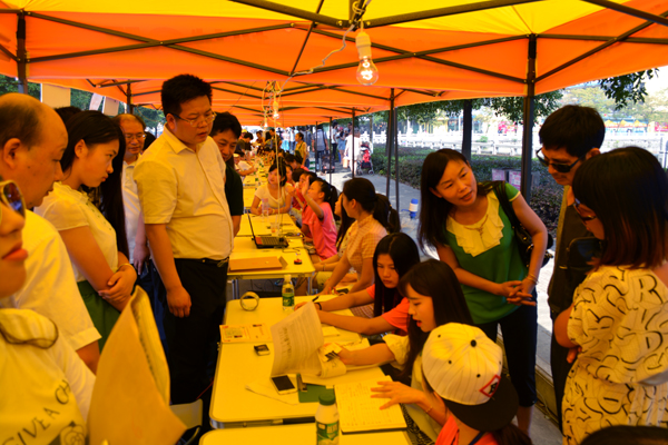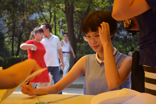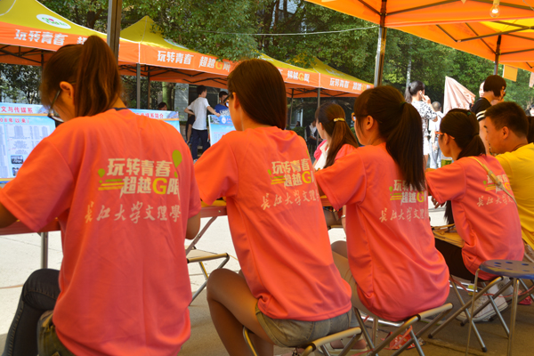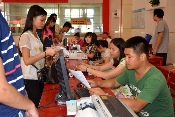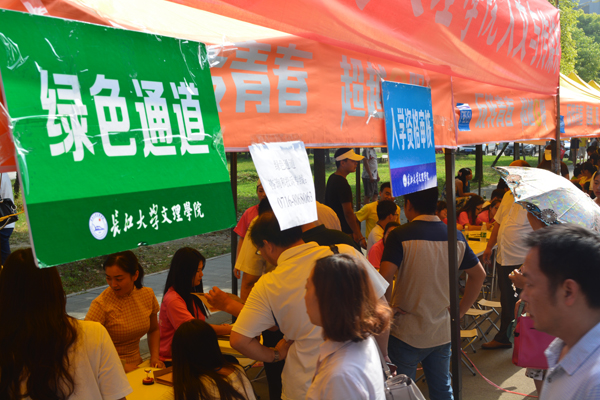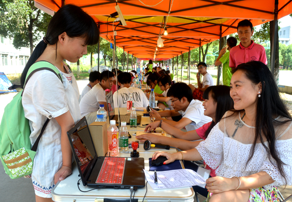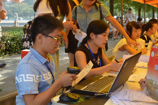 人文系辅导员张曦将审查过的入学通知书还给新生