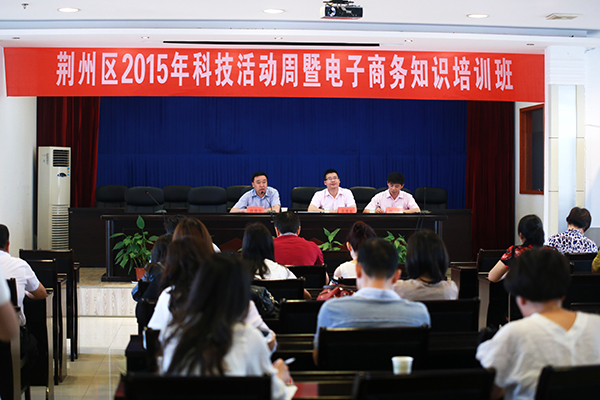 本网讯(通讯员 采方)5月22日上午,应荆州区科技局邀请,我院赵磊老师为荆州区2015年科技活动周暨电子商务知识培训班学员授课。荆州区相关领导出席了开班仪式,荆州区科技局、商务局有关领导参加了培训活动,荆州区30余家农业生产企业、农民专业合作社的负责人参加了学习。
