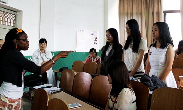 在轻松活泼的氛围中,许晓艳、崔罗强、刘小敏、汉娜、娜塔莎等经验丰富的教师在现场给予细致的点评。许晓艳肯定了参赛选手的优异成绩,认为大家通过这种形式展示出了新一代大学生的个性、活力与风彩,并与大家分享了英语学习的经验,对大学生英文学习和英文的运用提出了一些意见和建议。