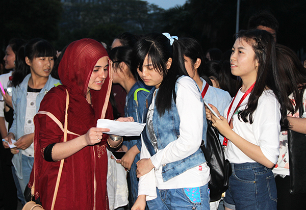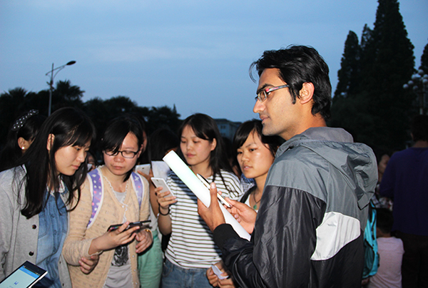 在场的中外学生们在热烈愉悦的氛围中,自由地表达自己的观点,将“外语角”活动一次次推向高潮。同学们在美丽的校园尽情感受英语的魅力,在星光璀璨的古泮池旁沐浴中国传统文化。