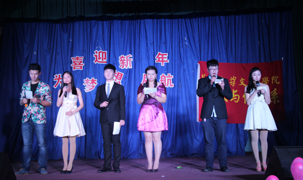 本网讯(见习记者  程勇)12月30日晚,我院人文与传媒系2015年元旦联欢晚会在城中校区工会大厅举行。人文系主任张社宁及相关负责人与全系师生同享艺术盛宴,共度欢乐时光。