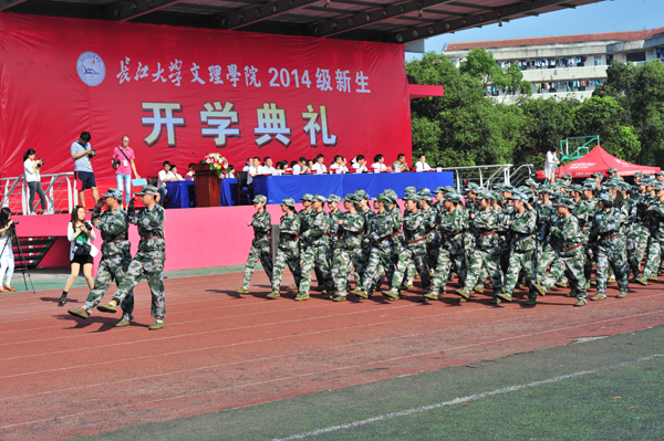 本网讯(记者 周芳 学生记者 吴童洁 王铭耀)9月22日上午,我院2014级新生开学典礼在西校区隆重举行,近1700名新生参加了开学典礼。长江大学党委常委、副校长周从标,我院院长王金琼、党委书记高迎斌、副院长郭睦庚、党委副书记汪邦柱、副院长王学峰、院长助理曹骥,中国人民解放军荆州军分区少校何伟,荆州移动分公司总经理助理程世新,以及各教学单位、职能部门负责人出席典礼。开学典礼由汪邦柱主持。