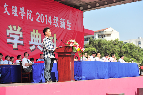 王金琼代表学院对2014级新生表示热烈欢迎,祝贺他们成为“文理人”。他说,自己的情怀就是希望经过长大文理‘熏染’的每一位青年,无论将来身处偏僻的乡村,还是喧嚣的都市,都能散发出一种独特的气息。这就是自尊、自重、自信、自强,要让这种气息成为融入骨髓的血液,与生命共存,那就必须共同坚守大学的灵魂!