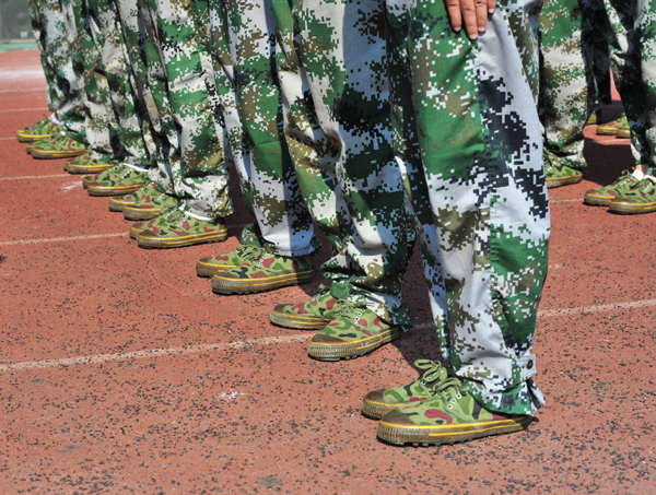 迈着矫健步伐的军训方阵