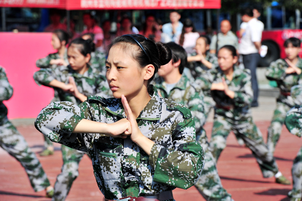 国歌激昂,回声嘹亮。阅兵式上,全体新生以良好的精神面貌、扎实的军事素养展示了15天的军训成果,列队展示、擒敌拳表演获得了现场雷鸣般的掌声。