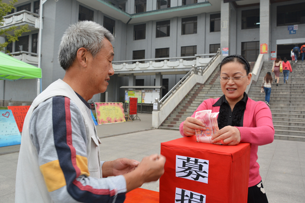 当天下午3点,外语系一批师生也自发参与到募捐活动中。47名教师慷慨解囊共捐款7500元,一批学生自发捐款3267.9元。
