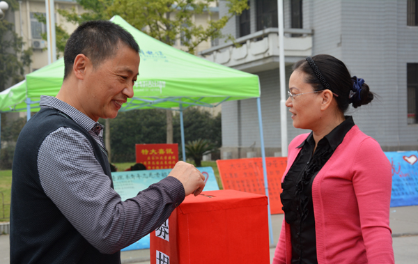 本网讯(记者 刘磊)国务院决定,自今年起,将每年的10月17日定为全国“扶贫日”。湖北省委高工委、省教育厅倡导,在全省各高校中开展一次以“小爱心·大扶贫”为主题的募捐活动。16日,我院举行了“小爱心·大扶贫”募捐活动。当天下午,由院领导带头,46名中层干部和部分自发前来的教职工踊跃参与,共募得善款11200元。