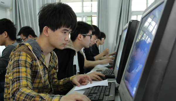 8点半,比赛正式开始,氛围紧张激烈,赛场鸦雀无声。一张张繁复的电路图在电脑屏幕上逐步展现,选手们认真答题,仔细思考。40分钟后,电信5121班同学习博率先完成电子系统的设计,几分钟后,选手们相继上交设计结果。