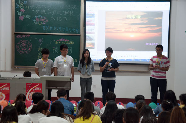 25日的答辩会,各参赛团队通过幻灯片、微电影等形式展示了各自在营销活动中的风采,“胜羽队”以慷慨激昂的演说,富有内涵的微电影引来的大家的一致好评。