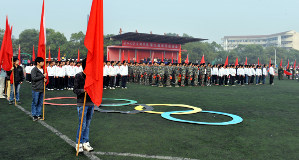 本报讯(学生记者吕浩 见习记者吴童洁 周安龙)弘扬体育精神,燃烧青春激情。11月7日,我院第九届田径运动会在西区田径场盛大开幕。当天上午,学院领导沈光明、袁先海、王金琼、汪邦柱出席开幕式,学院各职能部门、系部主要负责人和运动员、大赛组委会工作人员及千余名学生参加运动会。基础课部主任李成军主持开幕式。学院党委副书记汪邦柱致开幕词。