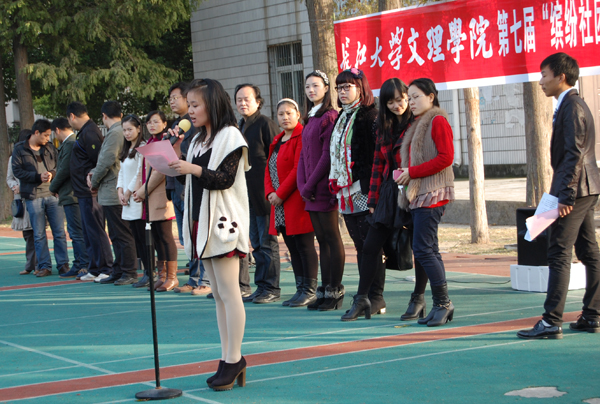 本网讯(学生记者吴海婷 见习记者周洁宇)11月15日下午,由我院社团联合会举办的第七届社团文化节在城中校区体育场隆重开幕。学院党委副书记汪邦柱,社团文化节组委会主任彭中、副主任李波涛,各系部学工副主任、30个社团的指导老师及700余名社团成员代表参加活动。