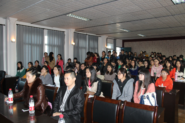 来到现场的三位总裁介绍了各自公司团队的情况。顺通彩色印刷有限公司总裁用诙谐幽默的演讲赢得同学们的热烈掌声;彤星服饰厂的韩总以《中国好声音》为例提出,好声音具有巨大吸引力的原因在于它给追梦者提供了一个公平、公正、公开,能发挥自己才能的平台,同学们应该抓住机会锻炼自己,不停的追逐梦想。