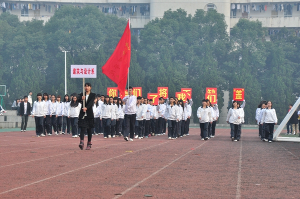 本网讯(学生记者肖文竹 见习记者刘璐 余小文)“超越自我,熔铸辉煌,争创佳绩,设计无敌。”11月7日上午,运动健儿们嘹亮的口号声响彻学院西区田径场。