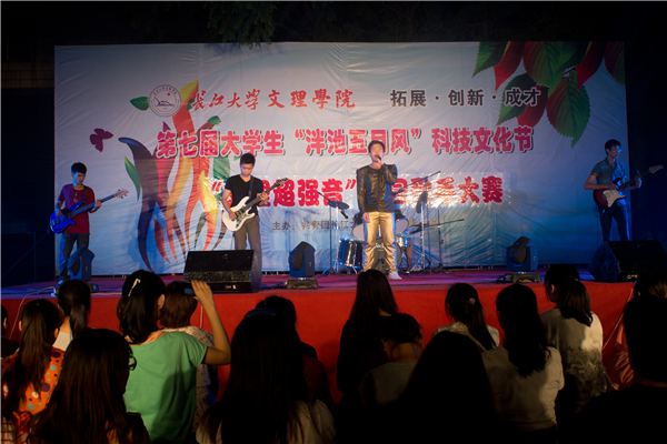 本网讯(见习记者 肖文竹)5月24日,“文理超强音”第七届校园歌手大赛在城中校区精彩上演,党委书记袁先海、党委副书记汪邦柱及全院师生共享这次视听盛宴。