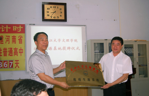 我院党委副书记汪邦柱详细介绍了学院学科建设、师资队伍、招生就业、优秀校友代表等基本情况,希望通过此次挂牌,促进我院和上蔡二中的全面合作,要求双方利用优质生源基地的有利平台为高校输送和培养更多优秀人才。