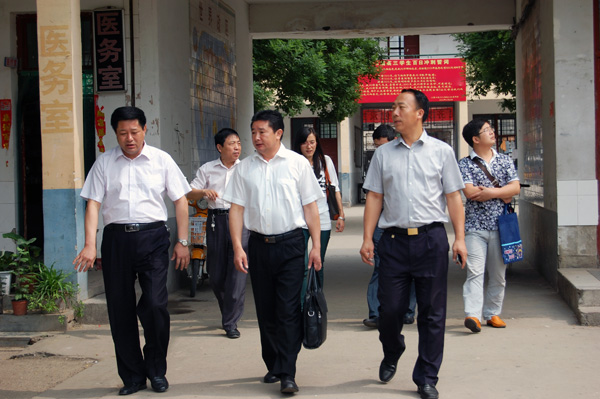 仪式结束后,汪邦柱一行在二中校领导陪同下参观校园。