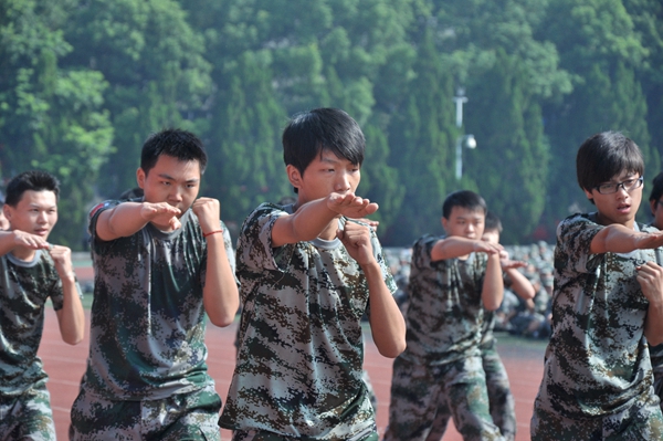 典礼正式开始,主席台全体成员起立奏唱国歌。礼毕,院长沈光明教授在陈继梁副参谋长的陪同下检阅了22个新生军训方正,观看了列队表演及男、女子擒敌拳表演。