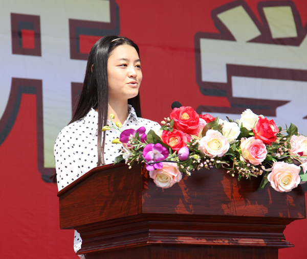 外国语系肖亚梅老师作为教师代表发言。她用赴韩留学的求学经历鼓励同学们以持之以恒的精神和不懈努力的行为,树立新的目标,开始新的历程,起航新的追求,在大学里释放青春的活力,实现自己的专业梦想。