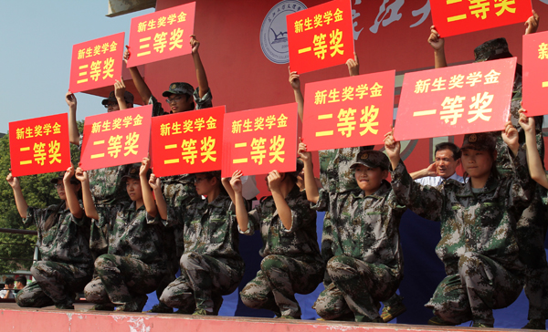 典礼上,学校副校长刘在洲,院领导沈光明、袁先海、王金琼、郭睦庚、汪邦柱等,分别为2013级新生军训工作先进单位及个人、2012-2013学年度优秀班集体及个人、2012-2013学年度“优秀辅导员”和获2013级新生奖学金的22名同学颁奖。荆州移动城区营业部总经理丰雷为获得“中国移动”奖学金的同学颁奖。