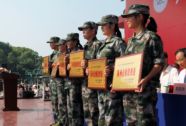学院党委副书记汪邦柱宣读了《关于表彰2013级新生军训工作先进集体和个人的决定》及《关于表彰2012-2013学年度优秀三好学生、三好学生、优秀学生干部、优秀班集体及优秀辅导员》等表彰文件。