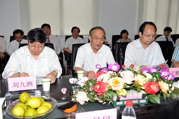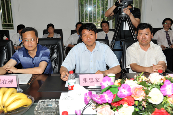 长江大学党委书记张忠家(右一)与我院领导亲切交流