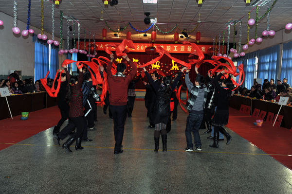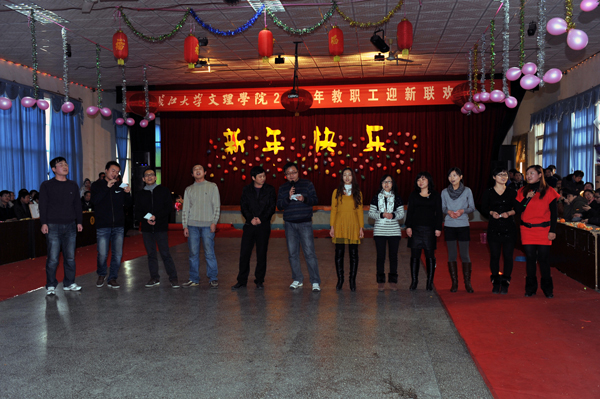 本网讯(记者 刘磊 通讯员 罗婷)兔去龙来辞旧岁,继往开来贺新春。1月6日下午,学院工会三楼张灯结彩,2012年教职工趣味联欢会在此举行。当天,院领导袁先海、郭睦庚、汪邦柱来到现场,与260余名教职工欢度新年。