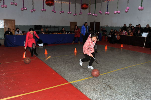 螃蟹接力赛跑、托乒乓球30米赛跑、摸石头过河、大丰收、脚夹球跳等七项趣味游戏,在精彩表演中穿插,教职工参与热情高涨。