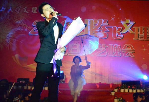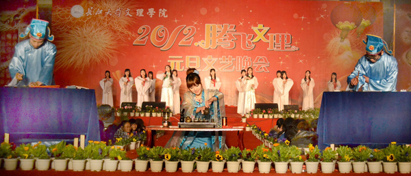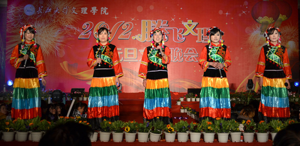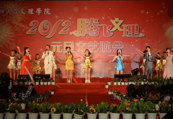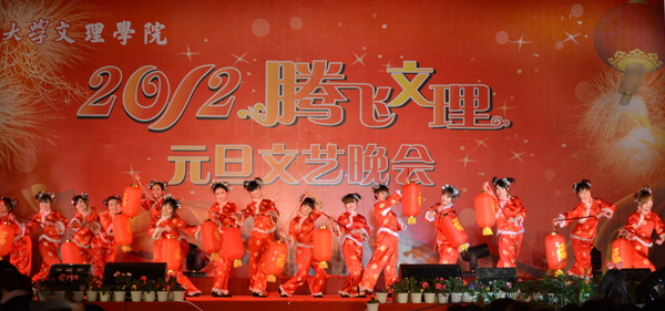 本网讯(见习记者 王幸 陈曦)玉兔欢歌辞旧岁,祥龙起舞迎新年。12月27日晚,艺术楼前流光溢彩、灯火辉煌,我院 “腾飞文理”2012年元旦文艺晚会隆重举行。