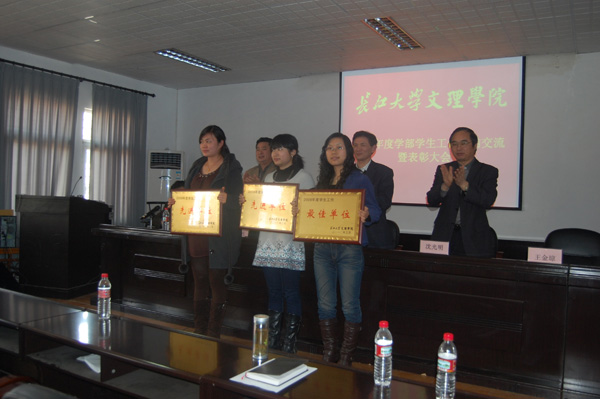 会上还宣读了《关于表彰2009学年学生工作先进单位的决定》,学工处经过全面考核评估,最终决定授予外语学部2009年度“学生工作最佳单位”荣誉称号,授予管理学部、理工学部等两个学部2009年度“学生工作先进单位” 荣誉称号。院领导沈光明、袁先海、汪邦柱分别为获奖单位颁奖。