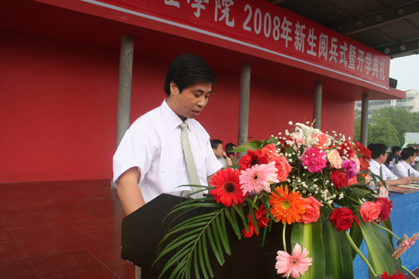 典礼上,长江大学副校长刘在洲同志代表校党委、行政对2008级新生的到来表示了热烈欢迎和诚挚的问候,他充分肯定了文理学院“学生至上”的办学理念,并指出,文理学院作为一所独立学院,共享长江大学的教学资源,祝愿学生们在大学生活中努力学习、成人成才。